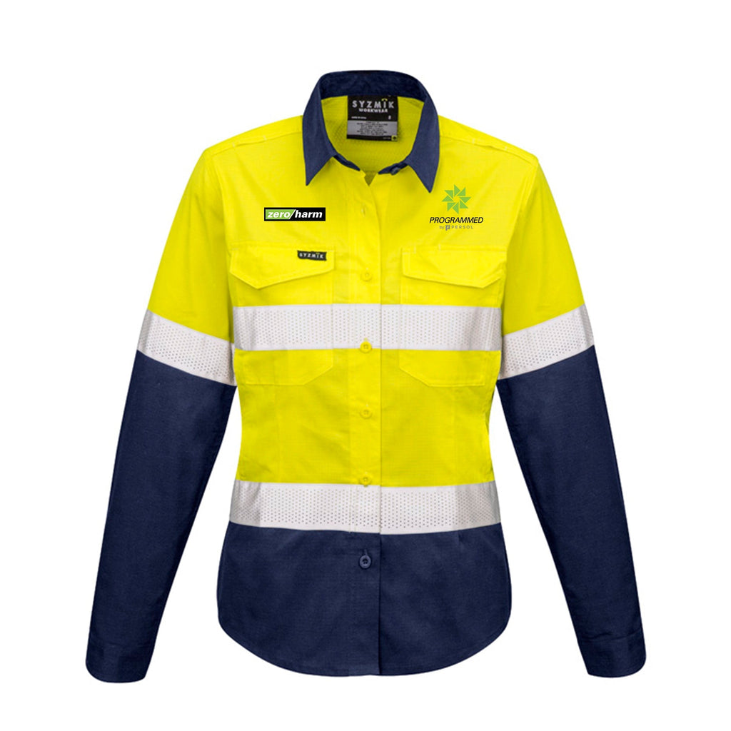 Fabric : 100% Square Weave Cotton Ripstop - 145 gsm Features : Mesh venting to increase breathability in the under arm, upper back and back side seam Mechanical stretch to give you more freedom of movement Tailored feminine fit...