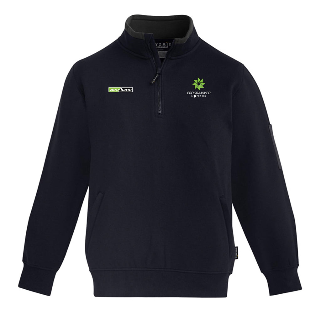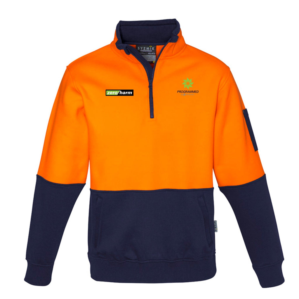 Fabric 55% Cotton 45% Polyester - 320 gsm Features - Premium heavy weight 320 gsm brushed fleece - Soft fleece feel for ultimate comfort on cold days - Half zip construction - Two hip pockets with zips so your tools, keys o...