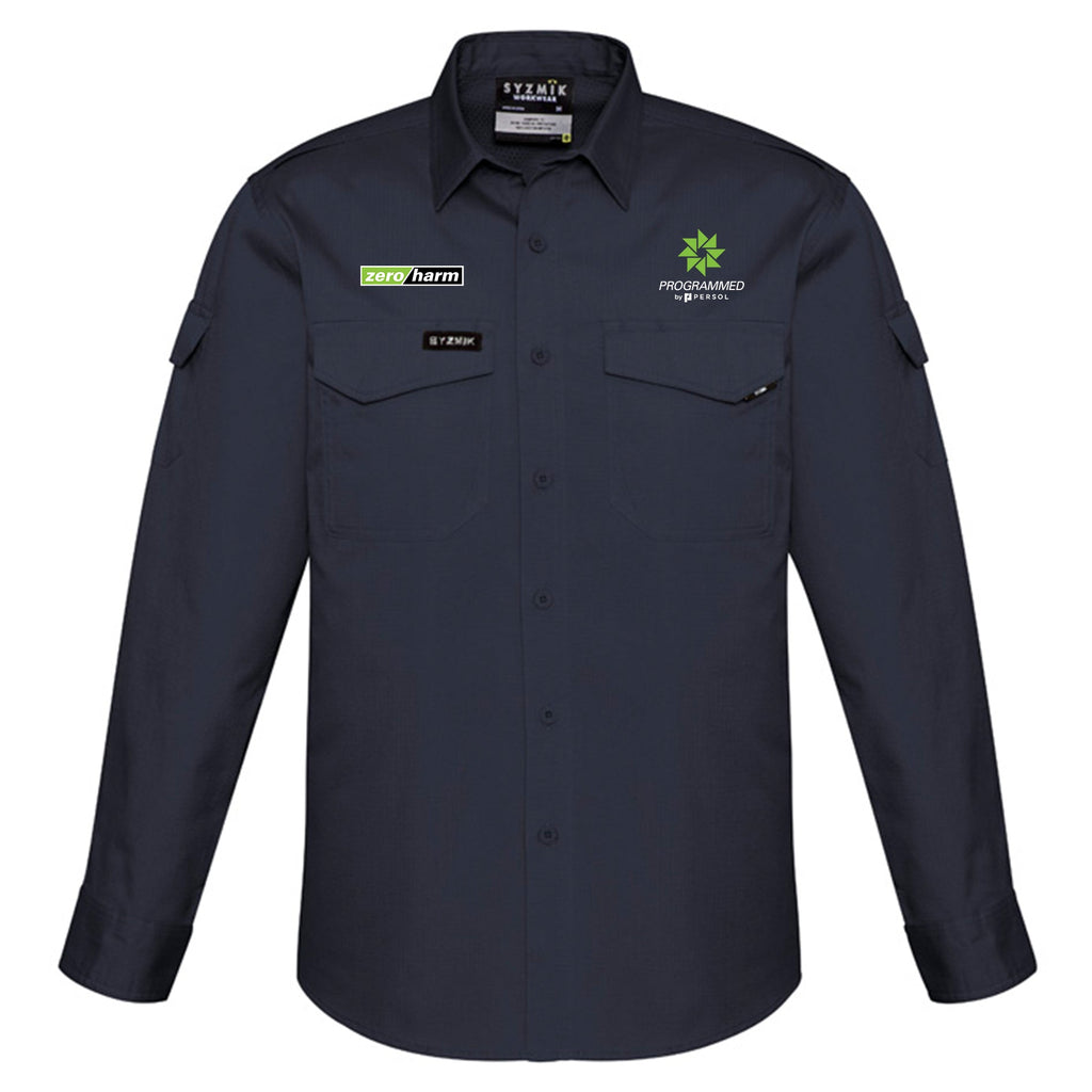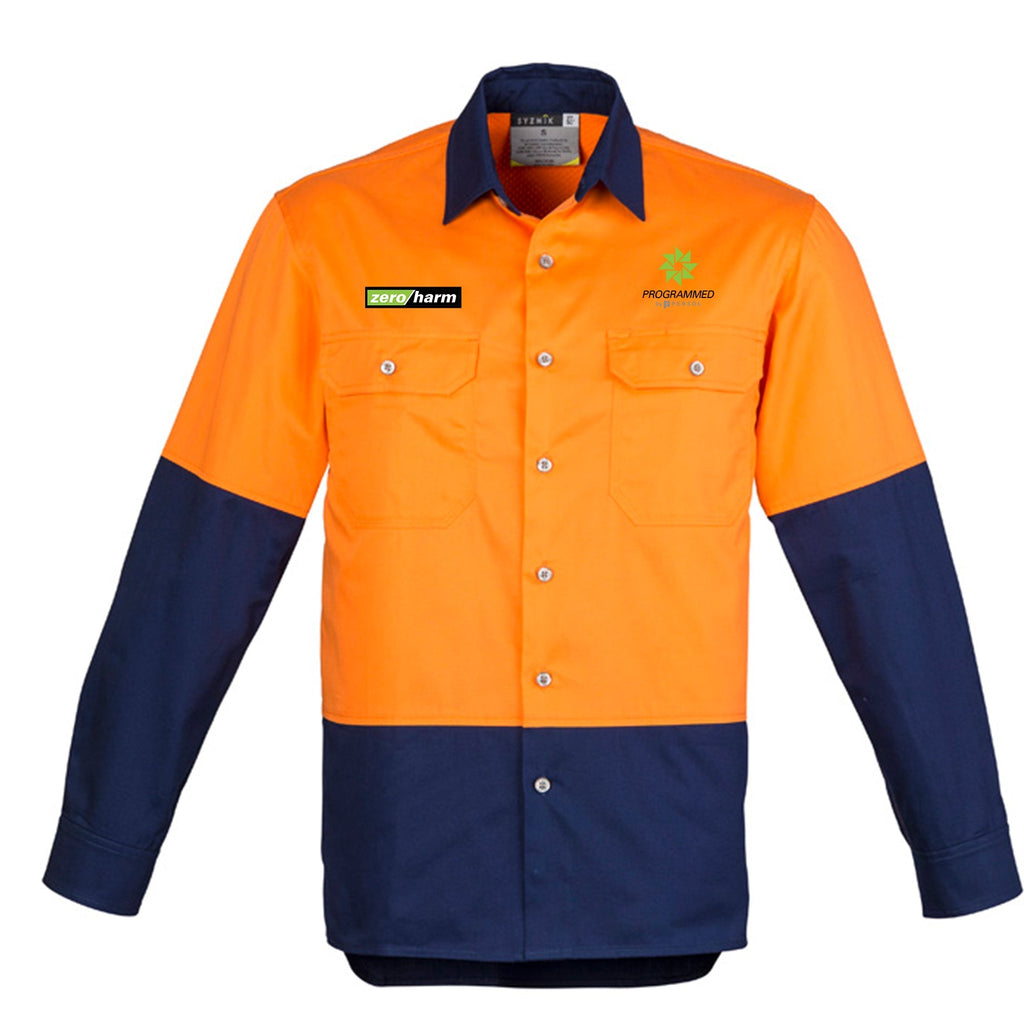 Fabric 100% Square Weave Cotton Ripstop - 145 gsm Features -Mesh venting to increase breathability in the under arm, upper back andback side seam -Mechanical stretch to give you more freedom ofmovement -Two Chest pockets wit...