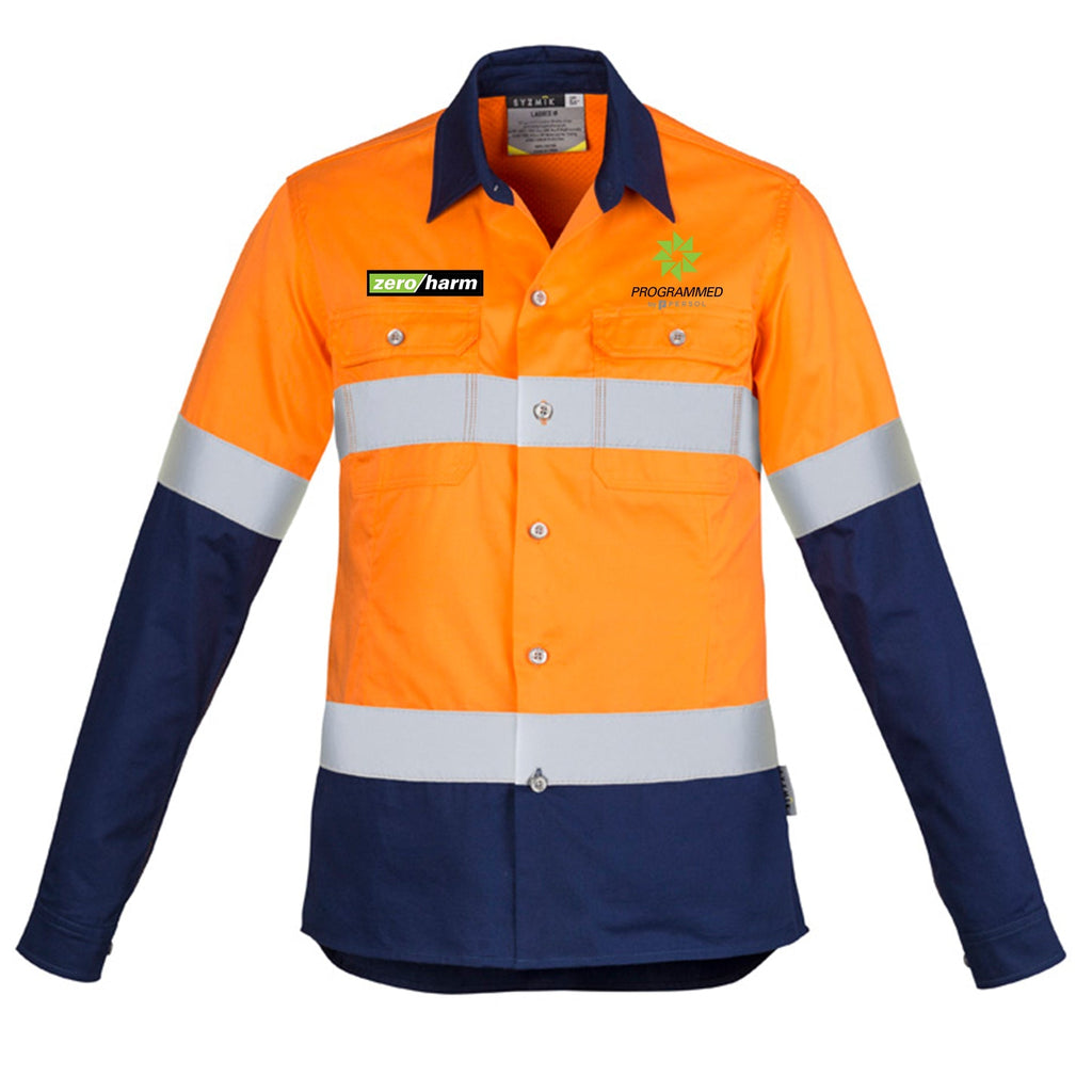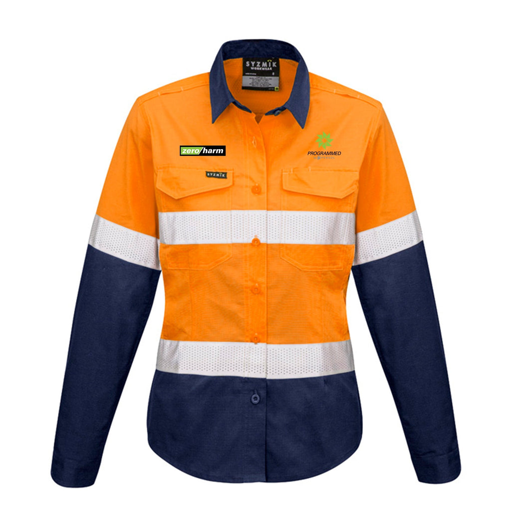 Fabric 100% Square Weave Cotton Ripstop - 145 gsm Features -Mesh venting to increase breathability in the under arm, upper back andback side seam -Mechanical stretch to give you more freedom ofmovement -Tailored feminine fit...
