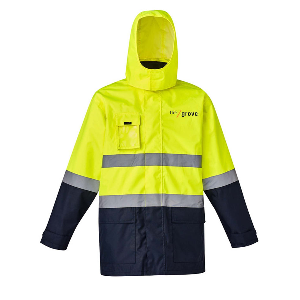 - 2 Way front zip with wind flap chin guard and stand up collar