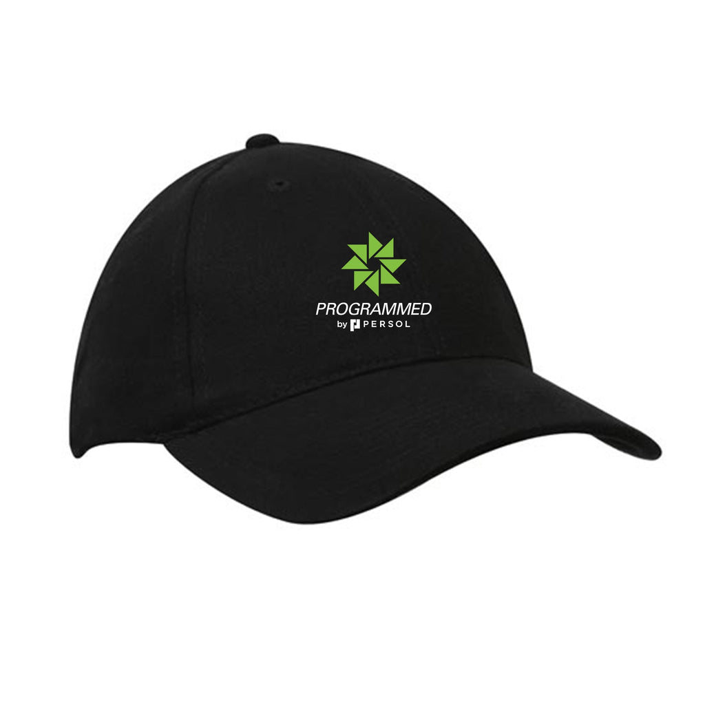 100% Brushed Heavy Cotton. Structured 6 Panel. Low Profile. Pre-Curved Peak. Short Touch Strap.