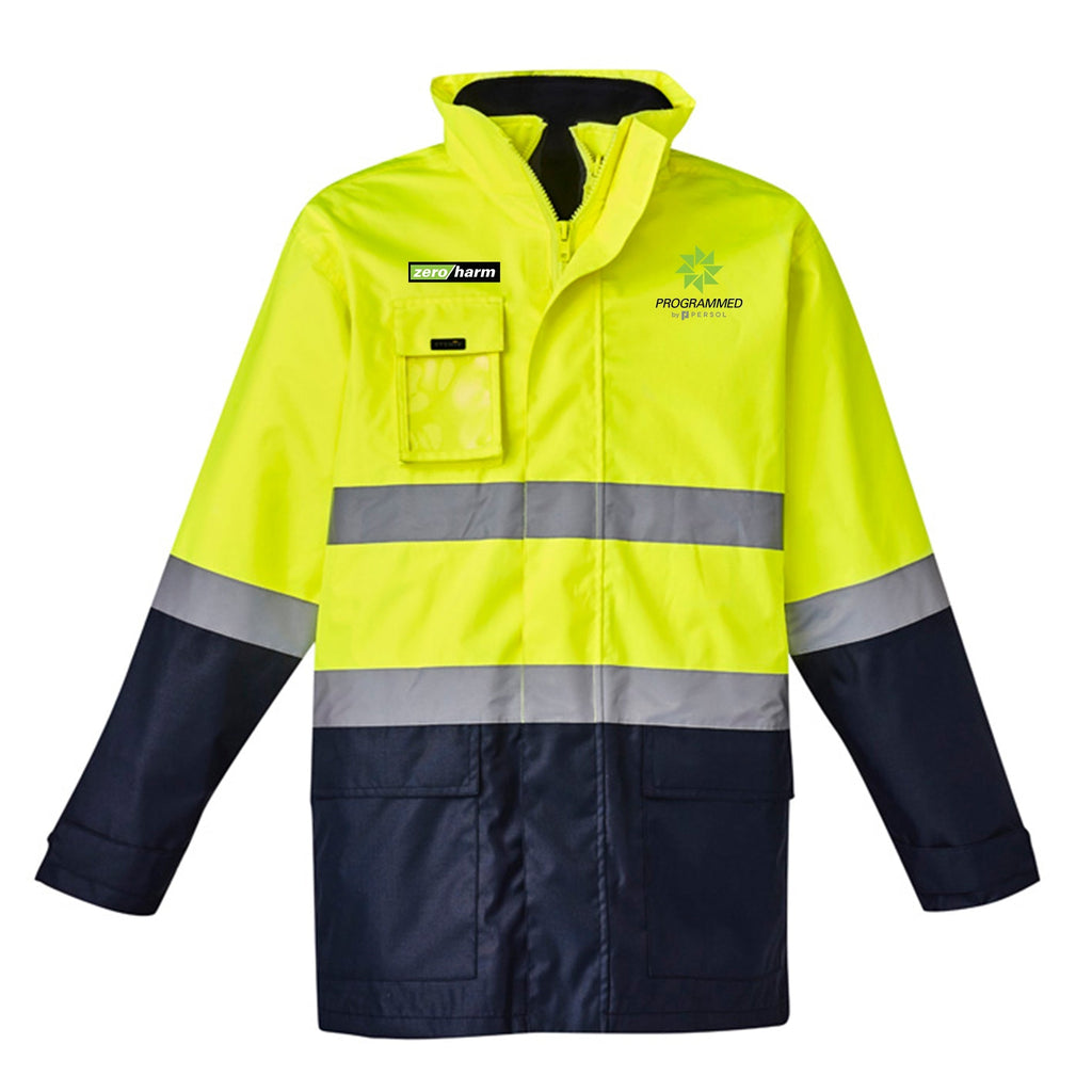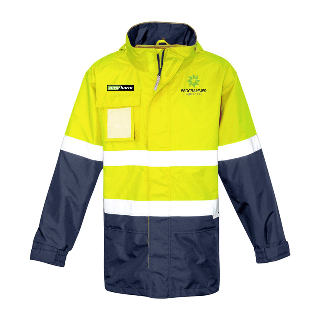 Fabric : 100% 300D Oxford Bonded Polyester Feature : Breathable Waterproof rating 5,000mm Waterproof zips and reflective piping detail Chin guard for added comfort Reflective tape Front side hip pockets with waterproof zip so y...