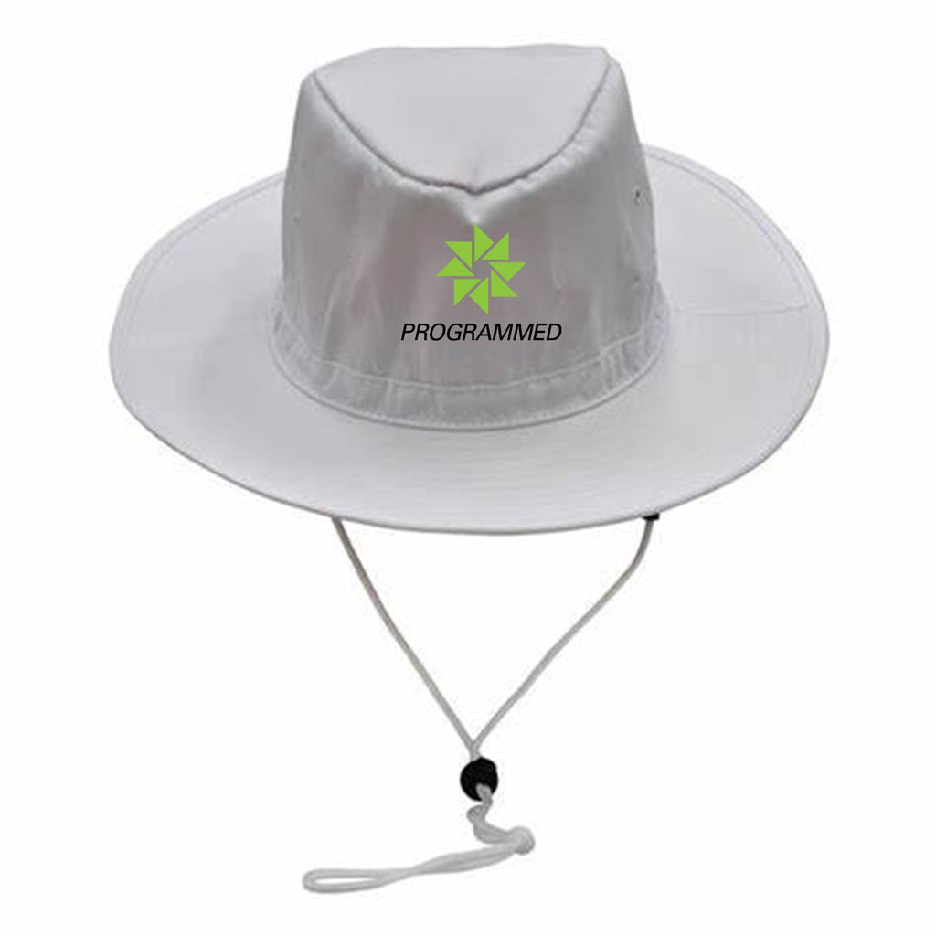 Description: PF rating 50 "Excellent Protection". Meets AS/NZS 4399:1999. Poly / Cotton fabric with hard brim. Self color metal eyelet for ventilation. Toggle and breakawa...